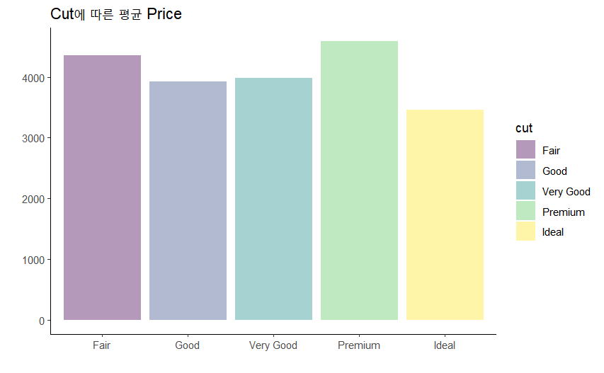 · 각 막대는 cut에 따라 색 지정(fill = cut)