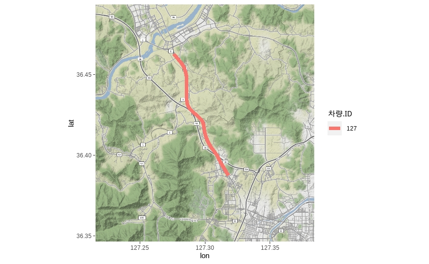 01. 차량 궤적 데이터 (ggmap + geom_line)
