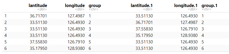 air.line.2 %>% head() # [1:3] 출발 [4:6] 도착