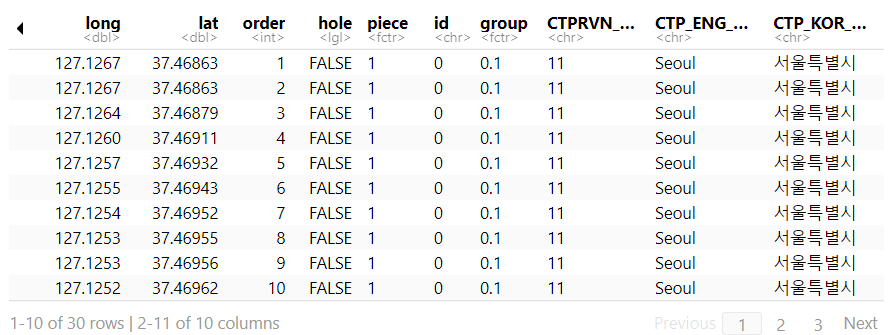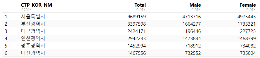 pop %>% str() # 시도명 CTP_KOR_NM