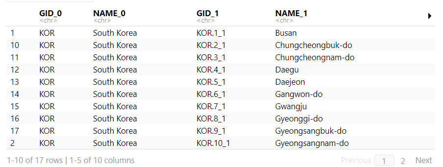 korea <- getData('GADM', country='kor', level=1)