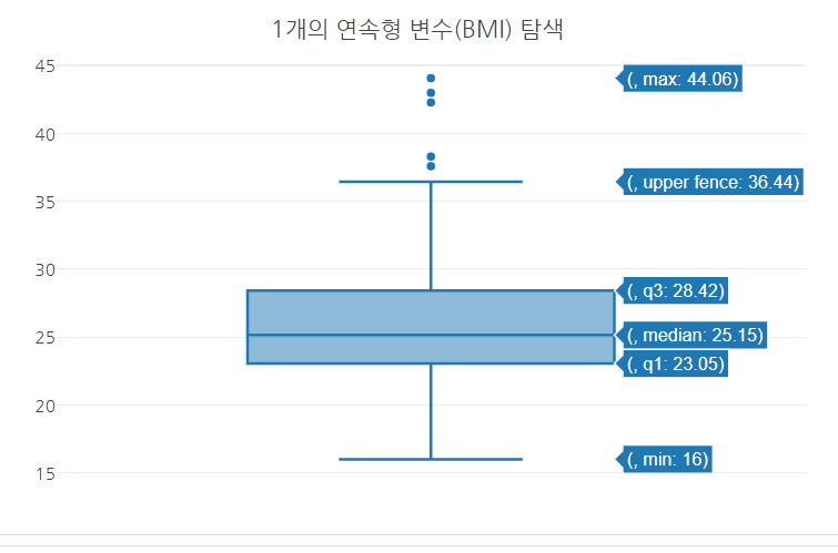 layout(title = "1개의 연속형 변수(BMI) 탐색",