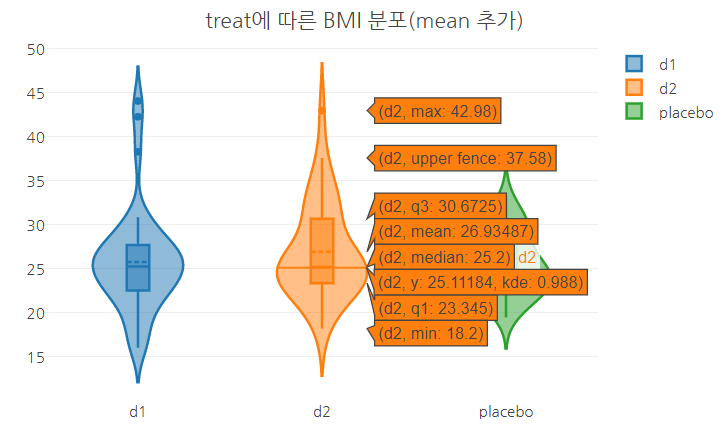 layout(title = "treat에 따른 BMI 분포(mean 추가)",