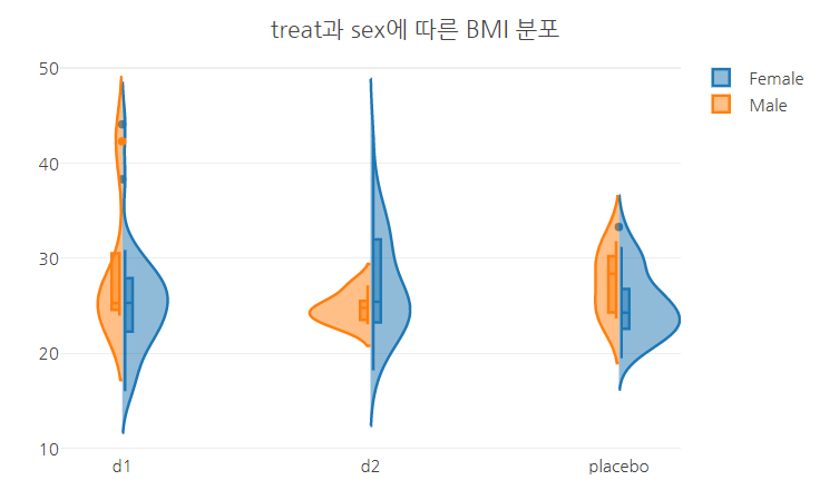 add_trace( data = data.1 %>% filter(sex =='F'), # 성별이 여자인 그룹의 treat별 BMI 분포