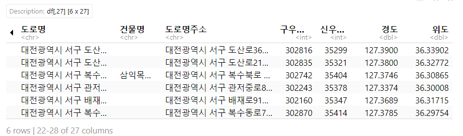 - 대전광역시 5개의 자치구 중 서구만 추출