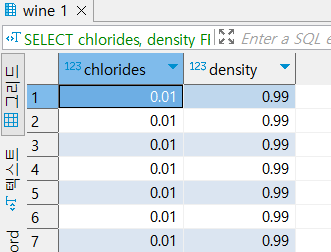 · 와인 품질 데이터 셋에서 chlorides, density 컬럼 값 반올림