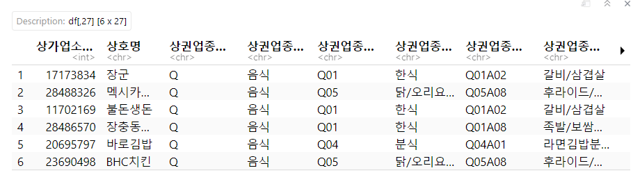 data.s <- data %>% filter(시군구명 =='서구' & 상권업종대분류코드 =='Q')