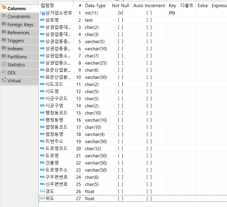 상가업소번호 int PRIMARY KEY,