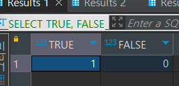 SELECT TRUE AND FALSE, TRUE OR FALSE;