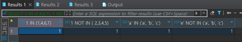 SELECT !TRUE, NOT 1, !FALSE, NOT FALSE;