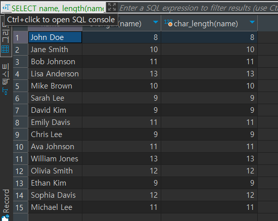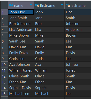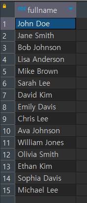 · LOCATE 함수를 사용하여 공백의 위치를 찾은 후 fullname을 firstname과 lastname으로 분리