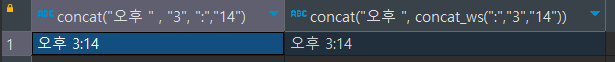- CONCAT_WS(separator, string1, string2, ...) : 두 개 이상의 문자열을 separator로 연결하여 반환