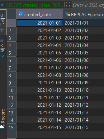 ⑩ REPLACE(string, old_val, new_val) : string에서 old_val 문자열을 찾은 후에, 찾은 문자열을 new_val로 대체