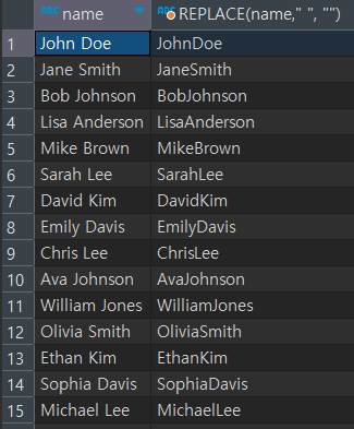 · REPLACE 함수를 공백 제거에서 사용할 수 있음