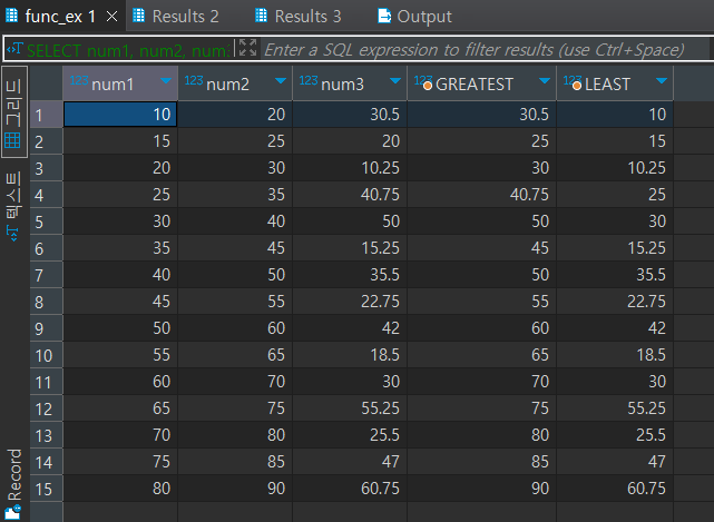 ⑤ GREATEST( ) : ( ) 안에서 가장 큰 값
