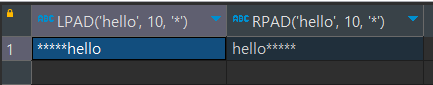 - RPAD(str , len, padstr) : 지정된 문자나 문자열로 문자열을 오른쪽으로 채우는 함수