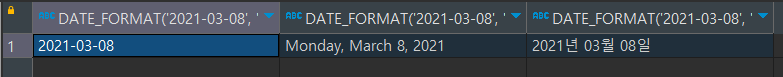 DATE_FORMAT('2021-03-08', '%Y년 %m월 %d일');