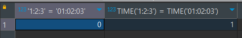 - time1, time2 값 모두 시간 형식(HH:MM:SS) 또는 날짜/시간 형식(YYYY-MM-DD HH:MM:SS)이어야 함.