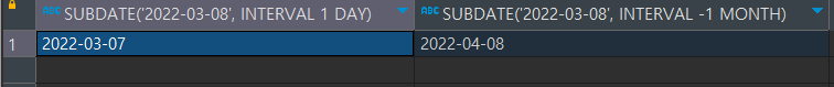 SUBDATE('2022-03-08', INTERVAL 1 DAY),