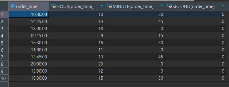 - SECOND( ): 시간 정보에서 초에 해당하는 값 반환
