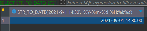 SELECT STR_TO_DATE('2021-9-1 14:30', '%Y-%m-%d %H:%i:%s');