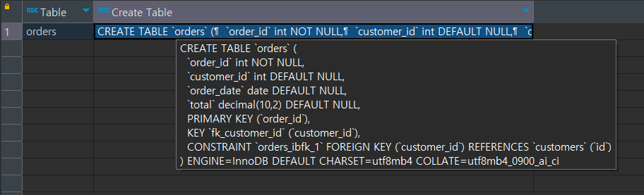 ✔️ 주문(order) 테이블에서 고객(customer) 테이블의 ID를 참조하는 외래키 제약조건 설정