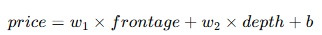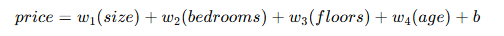 - 예를 들어 w1=50이면 집크기(x1)가 1 증가할 때 집값이 약 50 증가한다고 모델이 '학습' 했다는 의미