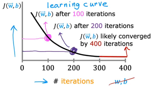 - 정상적인 경우 iteration이 증가하면 cost가 감소하고, 즉 Cost 값이 계속 감소하면서 어느 시점에서 수렴하게 됨- cost가 증가하면 일반적으로 alpha(학습률)가 너무 크거나 코드에 버그가 있다는 뜻