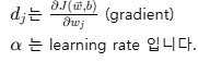 - 학습률 : 너무 작으면 학습 속도가 느리고, 너무 크면 최적값을 지나칠 수 있음