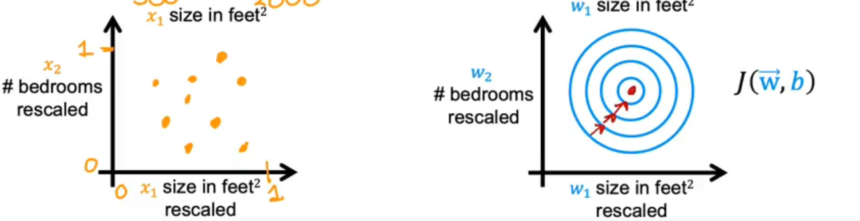 이처럼 feature의 값 범위가 파라미터 크기에 영향을 줄 수 있다.